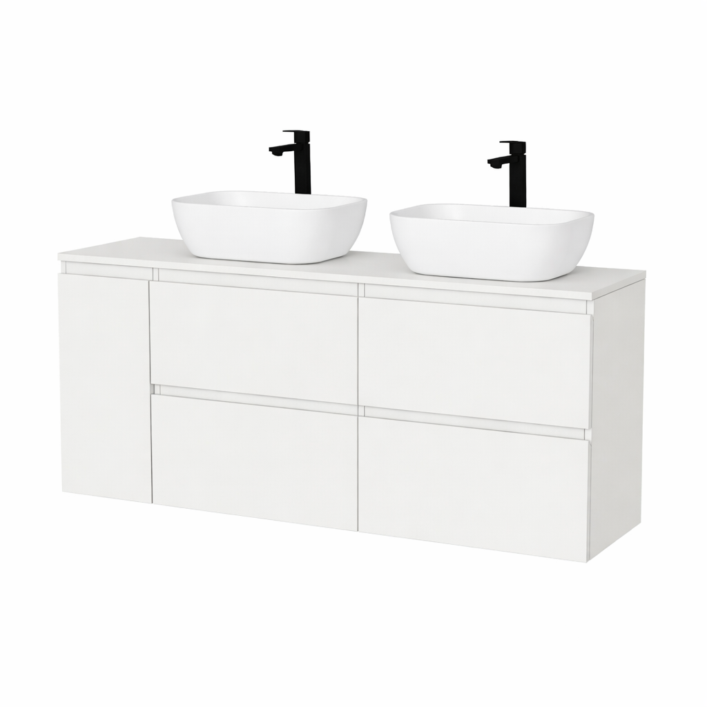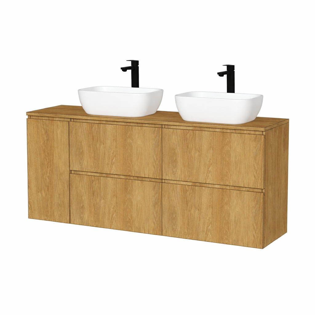 Elegantná kúpeľňová skrinka s umývadlom položeným na doske pôsobí čisto, nadčasovo a zároveň funkčne. Pri dopyte je potrebné uviesť presný typ umývadla. Vybrať si môžete zo zvolených dekorov alebo si zvoliť individuálne riešenie na mieru. Skrinka je dodávaná kompletne zmontovaná a pripravená na osadenie.