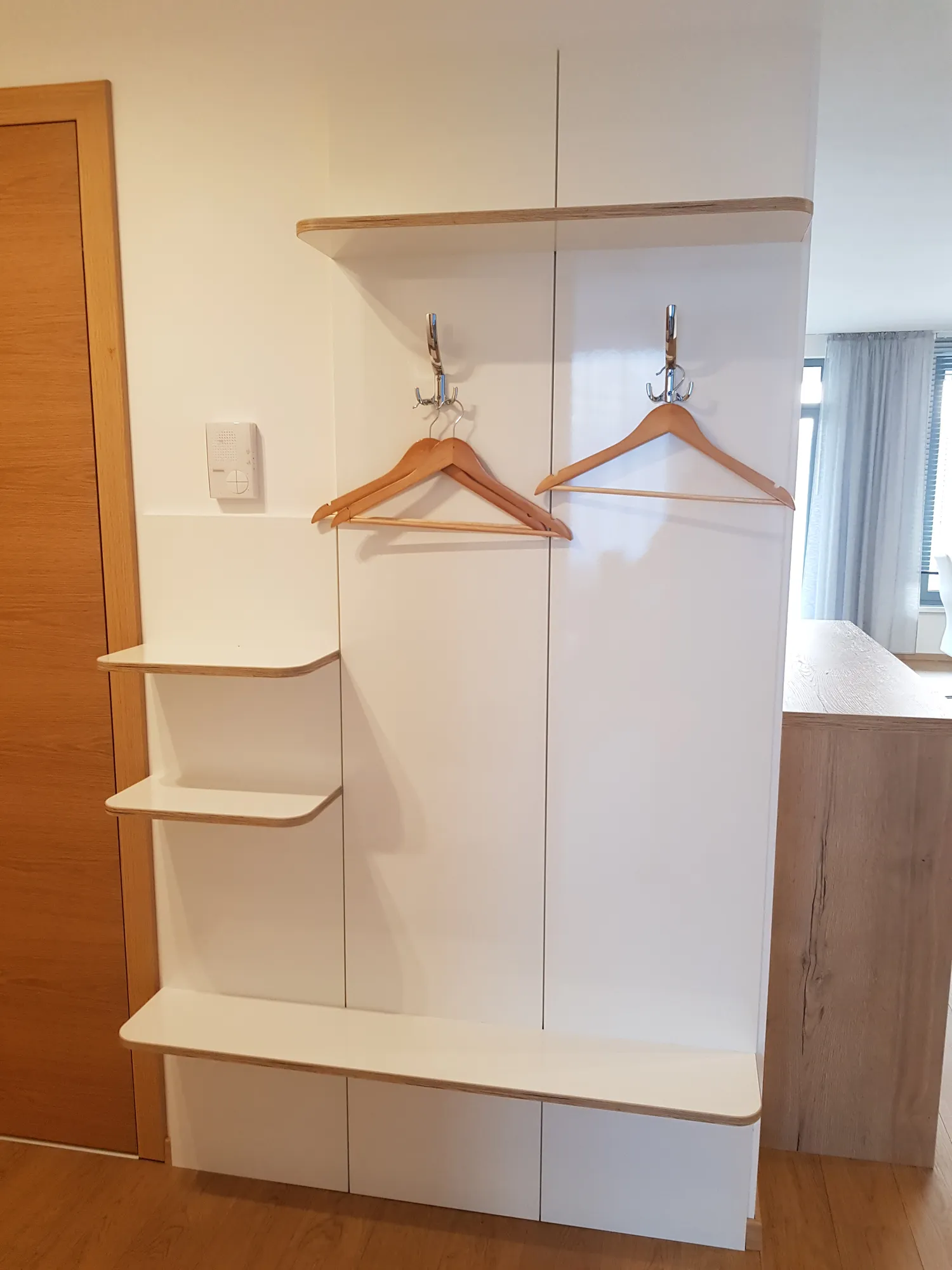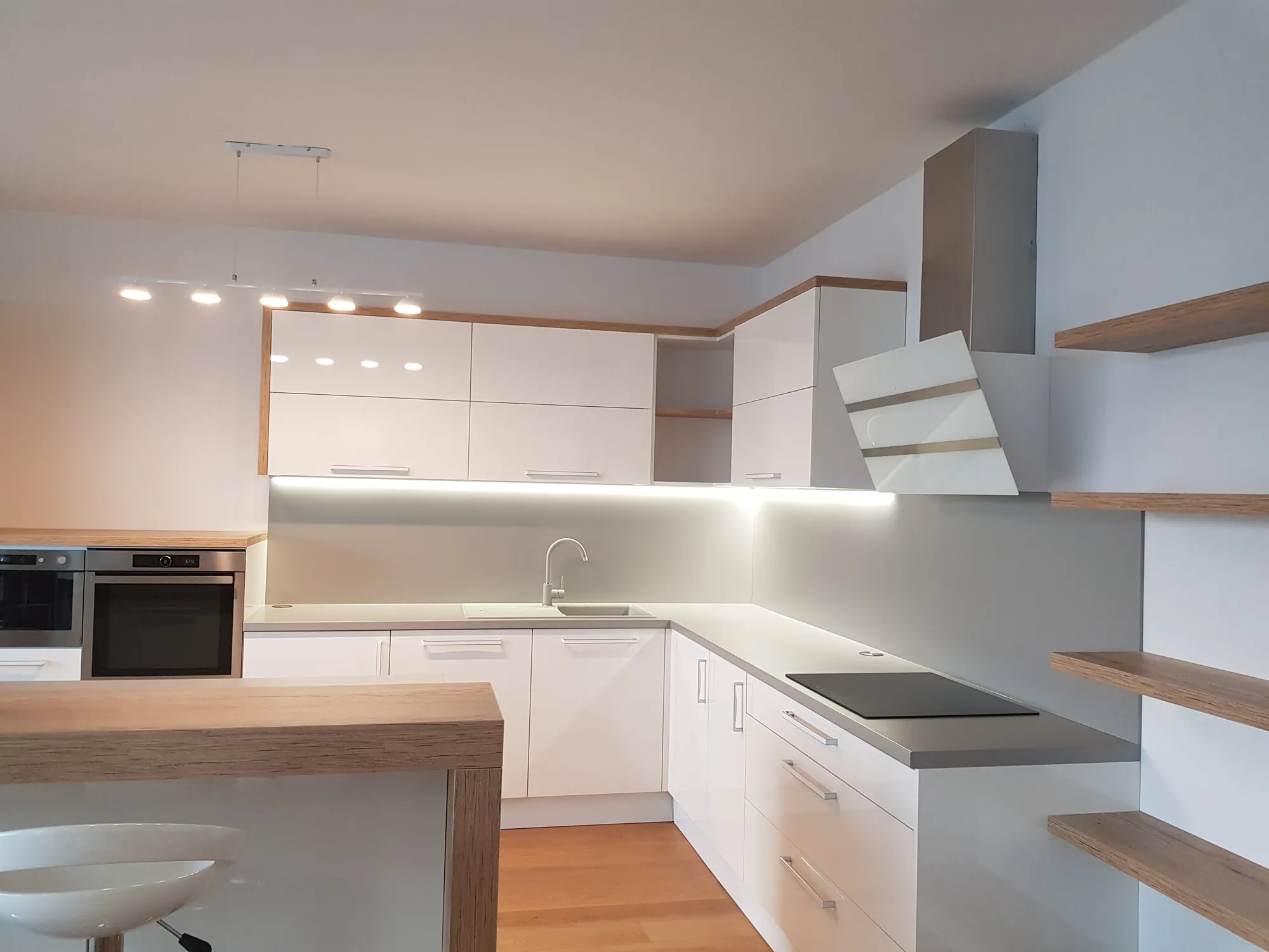Pracovali sme so svetlou farebnosťou, čistými líniami a materiálmi, ktoré nepôsobia dočasne. Interiér je vizuálne pokojný, no zároveň dostatočne charakterový, aby nepôsobil anonymne. Dôležitá bola praktickosť – dostatok úložného priestoru, logická dispozícia nábytku a jednoduchá údržba.