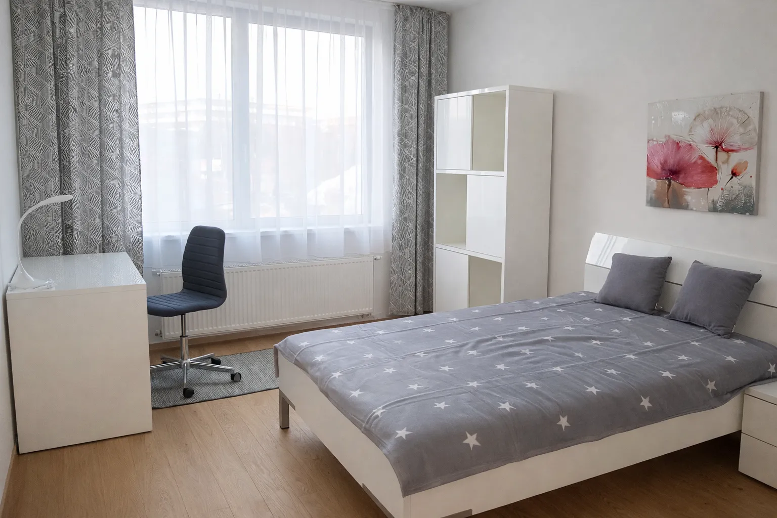 Byt, ktorý bol odovzdaný v štandarde v lokalite Karloveské rameno sme navrhovali s jasným zámerom – vytvoriť univerzálny, nadčasový interiér pripravený na prenájom. Priestor, ktorý bude rovnako prirodzene fungovať pre manažéra, pár aj mladú rodinu.